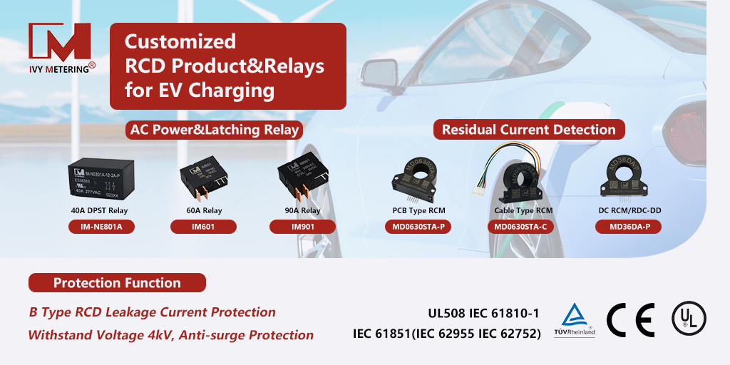 Therefore, limiting the size of the relay is one of the important factors in miniaturizing the charging pile. This also reflects the importance of the relay and its important position in the design of charging piles. At the same time, we need to ensure the quality of the relay, which will affect the later operation and maintenance costs. In order to meet the needs of the market, we need to continuously improve the technical level of our products, including the application of new materials and new technologies, to achieve smaller size and higher performance relays to meet the market demand for miniaturization of charging pile design. IVY Metering IM-NE801A relay has the characteristics of small size, high capacity, low power consumption, pressure resistance, low temperature rise, etc. The product has passed UL certification and complies with IEC 61810-1, IEC 61851-1, IEC 62955 and other certifications.